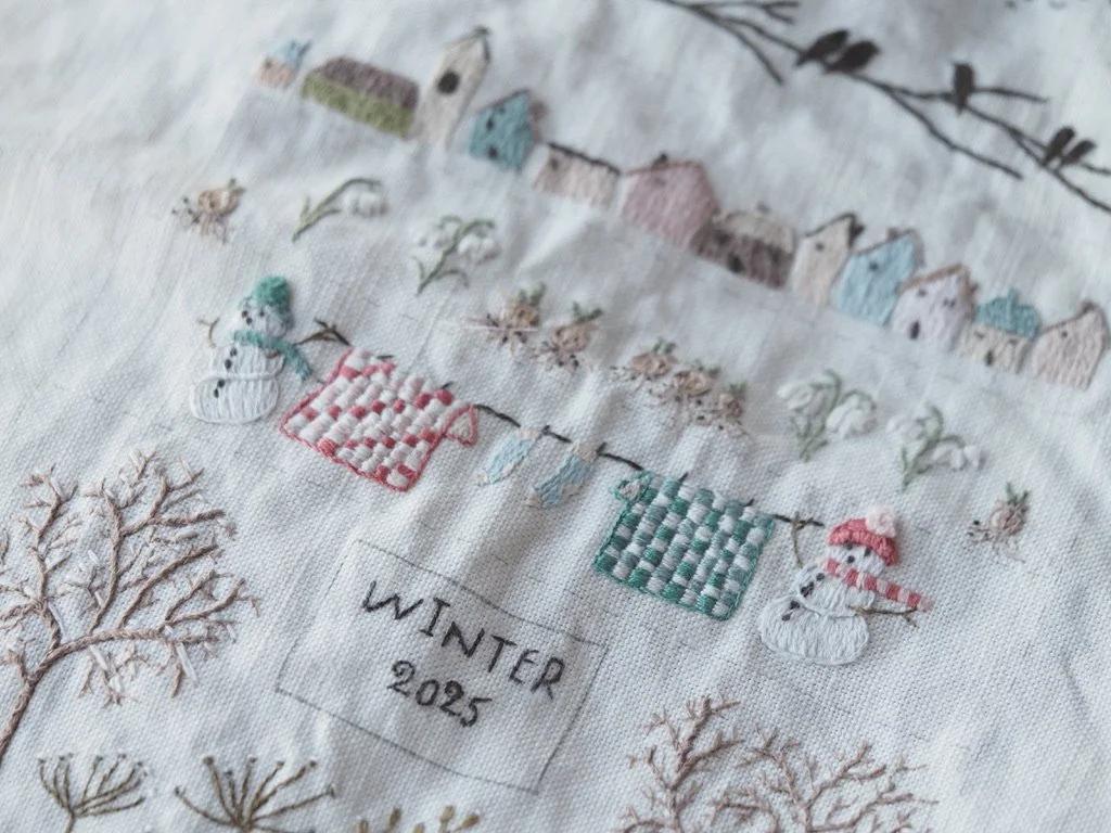 Finally, for £500 you can sign up for our 'future' online teaching bundle which includes presently running classes (Herbarium and Winter Stitchalong) plus all future content. Again with unlimited access for all of them. (Herbarium stitching by Sarah and a Winter Stitchalong photo that I stole from Stitch Club Kathy - hasn't she done a lovely job.)