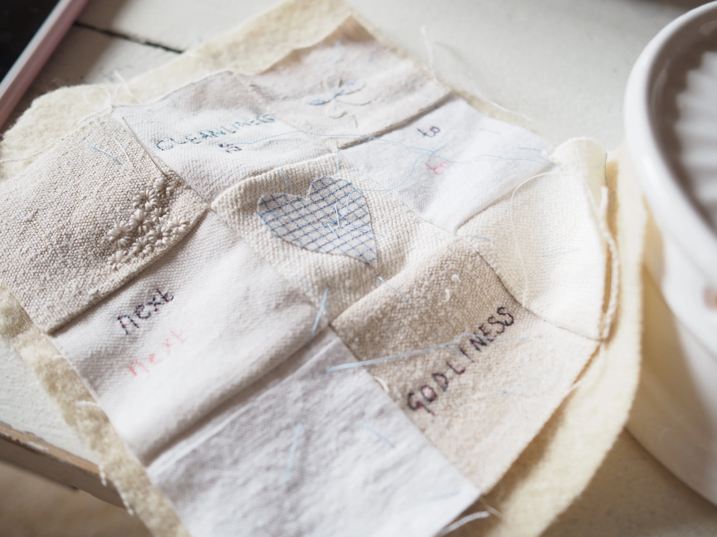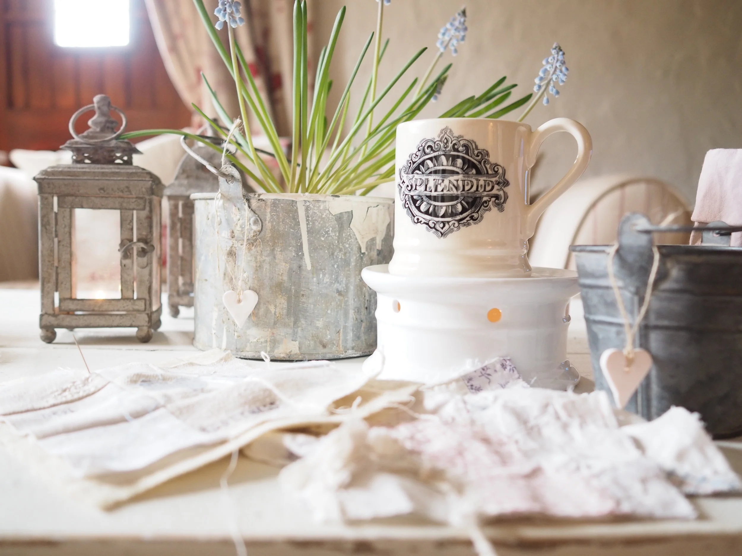 Summer is passing for us in a blur of salted caramel ice creams, fruit cider, long dog walks in the late evening and lots of cool showers. Electric fans whirring, duvets relegated to storage and small posies of roses at our bedside. Brocantes, antique fairs and car boot sales. Fresh sourdough loaves and my favourite Portugese custard tarts. Watering the roses, sweet peas, hanging baskets, geraniums and tomatoes with a morning coffee. Trips to the zoo, parks and paddling pools with my nieces who cartwheel and dance on every spare inch of ground. It is all so perfect. We have had such wonderful weather and we are relishing every minute of it. Since my workshop at the Cozy Club at the end of May I have been obsessed with seaside paraphernalia - I have been making tiny bunting for tiny vintage boats and digging out all of my old ticking in red, white and blue stripes to make cushions, lavender bags and hanging hearts. It is so nice to have a bright white bathroom at last, that I can decorate with pretty handmade things. I have a few more boats to make, a few more hearts and a little drawstring bag to keep my make up in. Mostly though I am spending my time working on a few new embroidery designs that I will be bringing with me to the brocantes at the end of August. Sign up for our newsletter, below, to get advance notification of sales and Little Green Door news!